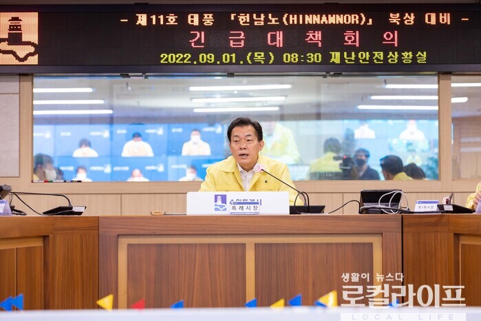 [수원=로컬라이프] 송준형 기자 = 이재준 수원특례시장이 북상 중인 태풍 ‘힌남노’에 대한 철저한 대비를 당부했다.