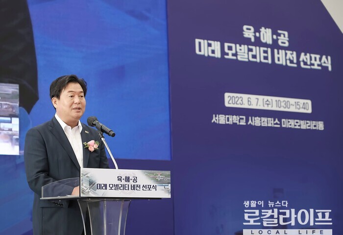 [시흥=로컬라이프] 송준형 기자 = 서울대학교 시흥캠퍼스에서 ‘육·해·공 미래 모빌리티 비전 선포식’이 7일, 개최됐다.