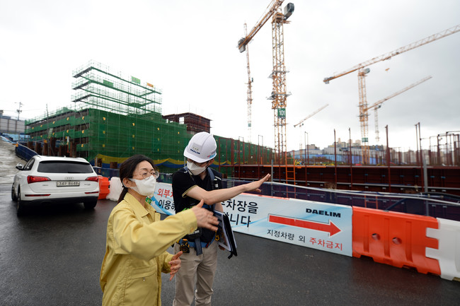 <사진/ 은수미 성남시장이 금광1구역 공사현장을 점검하고 있다 >