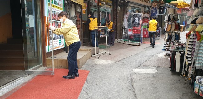 특히, 사람들 접촉이 많은 출입문과 손잡이는 일일이 찾아 닦고 소독하고 공중화장실도 집중 방역했다.