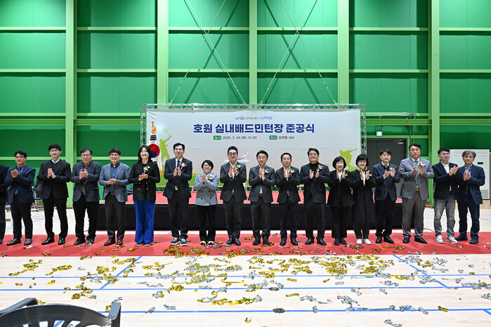 호원 실내배드민턴장은 총사업비 35억 원을 투입해 지상 1층, 연면적 791㎡ 규모로 조성된 배드민턴 전용구장으로, 4면의 코트와 함께 화장실 및 샤워실 등 부대시설을 갖췄다.