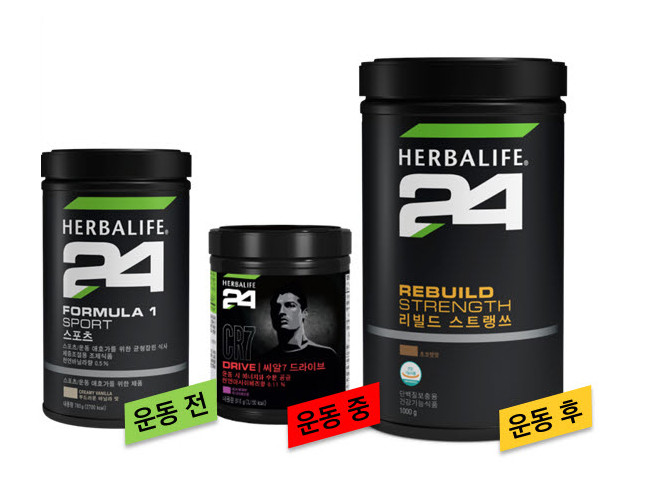 ‘허벌라이프24’는 운동 전 에너지를 보충할 수 있도록 17가지 이상의 비타민, 무기질, 유단백질 등을 함유한 허벌라이프24 Formula 1 스포츠, 운동 중 틈틈이 섭취해 수분과 에너지를 보충할 수 있는 허벌라이프24 씨알세븐 드라이브, 운동 후 근육 구성 및 건강 유지에 도움을 줄 수 있는 프레스티지급 제품인 허벌라이프24 리빌드 스트랭쓰로 구성되어 있다.