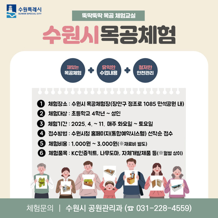 수원시(시장 이재준)가 4월부터 11월까지 ‘2025년 목공 체험교실’을 운영한다.