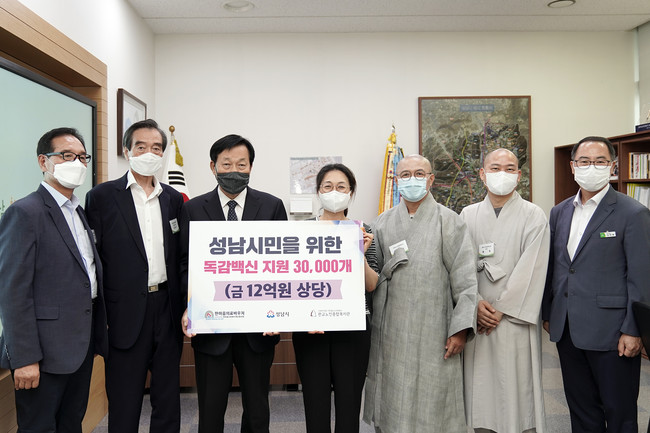 [로컬라이프] 한마음사회복지재단 중앙회가 예방접종 사각지대에 놓인 이들을 지원하고 싶다며 성남시에 8월 28일 독감백신 3만개를 기탁했다.