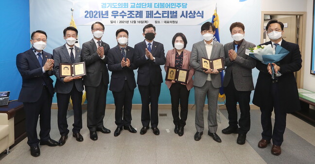 「2021년 우수조례 페스티벌」시상식은 도의회 교섭단체 더불어민주당 소속 의원들이 대표발의한 우수조례를 선정하고 정책 중심, 일하는 경기도의회를 정립하기 위하여 마련됐다.