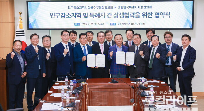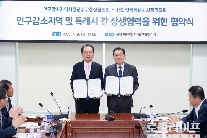 [로컬라이프] 박봉민 기자 = '대한민국특례시시장협의회'와 '인구감소지역시장·군수·구청장협의회'가 '인구감소지역 및 특례시 간 상생협력을 위한 협약'을 체결했다.