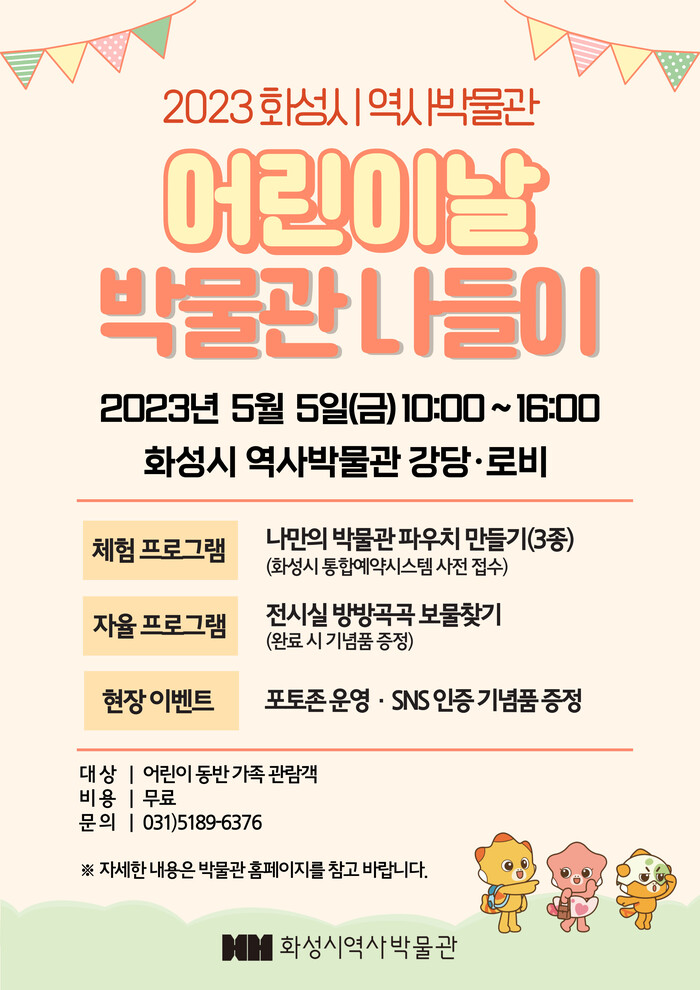 화성시 역사박물관이 어린이날을 맞아 아이들이 지역의 역사와 박물관 유물에 흥미를 가질 수 있도록 무료 체험 프로그램을 운영한다.