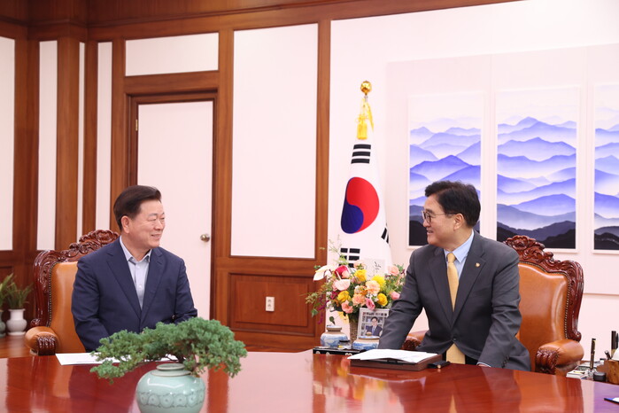 박승원 광명시장은 기후위기 대응.에너지전환 지방정부협의회(이하 협의회) 회장 자격으로 3일 국회에서 우원식 국회의장(이하 국회의장)과 기후위기 대응 및 탄소중립 분권을 논의하는 간담회를 가졌다.