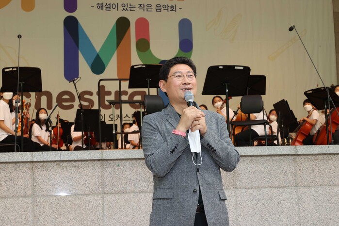 이상일 용인시장은 취임 첫 주말을 맞은 지난 2일 수지구 죽전야외음악당에서 열린 (재)용인문화재단이 운영하는 꿈의 오케스트라 ‘용인’의 해설이 있는 작은 음악회 ‘오 마이 오케스트라’를 관람했다.