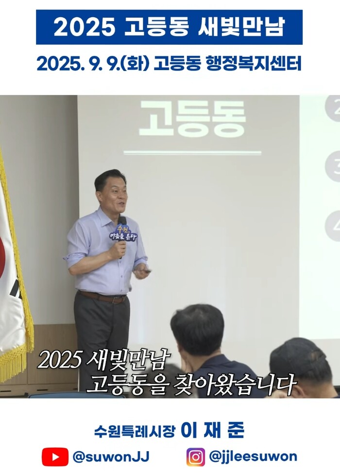 이와 관련해 이재준 시장은 16일, 자신의 페이스북에 관련 영상과 함께 올린 글에서 “2025 새빛만남, 고등동을 찾았다”고 밝혔다.
