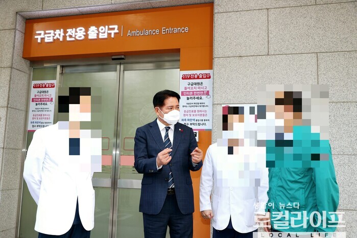 | ▲ 최대호 안양시장이 한림대학교 성심병원 응급센터를 방문하고 있다. (사진출처=최대호 페이스북) |