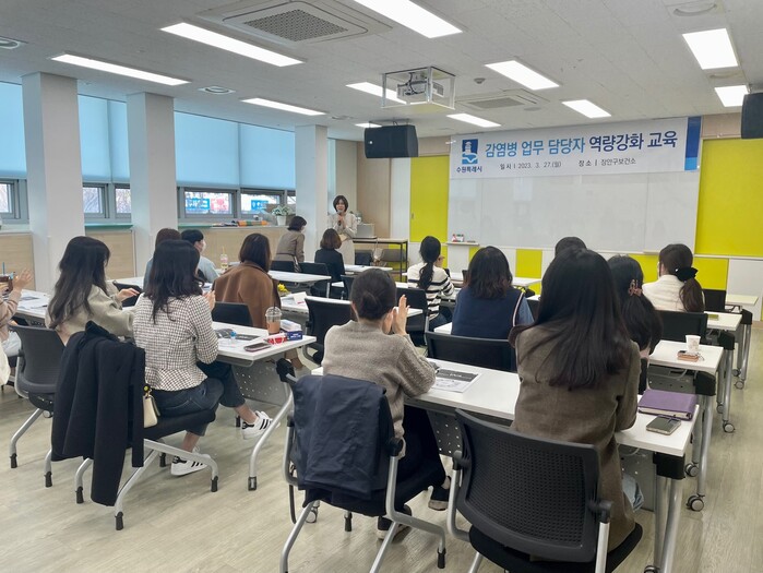 수원시보건소는 27일 장안구보건소에서 ‘2023년 감염병 업무 담당자 역량강화 교육’을 열었다.