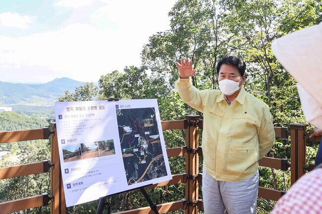 [로컬라이프] 백군기 용인시장은 13일, 자신의 페이스북을 통해 지난 주말, 양지면 제일리 총신대학교 뒤에 조성된 ‘제일리 순환형 임도’에 다녀왔다며, 그날은 선선한 가을바람이 불어와 트레킹 하기에 안성맞춤이었는데, 숲에서 뿜어내는 피톤치드 덕분에 트레킹을 마치고 한껏 기분이 좋아졌다고 전했다.