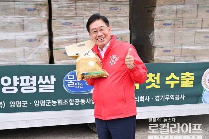 [양평=로컬라이프] 송준형 기자 = ‘물맑은양평쌀 미국수출 선적식’이 11일, 양평농협공동사업법인 미곡처리장에서 진행됐다.