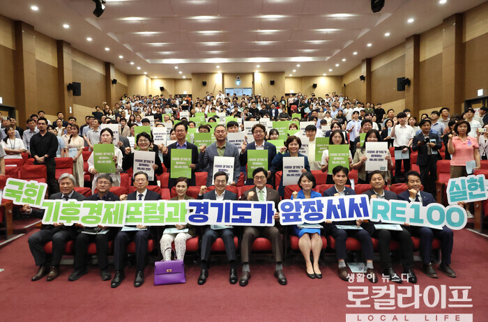 | ▲ 「글로벌 RE100 압박과 한국의 대응」 국회토론회 참석자들이 기념촬영을 하고 있다. (사진제공=경기도) |