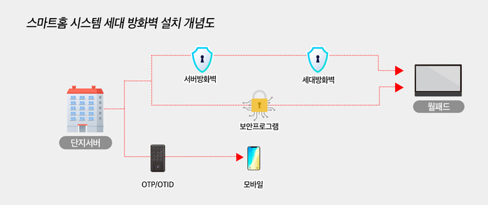 물리적 망분리는 메인서버에만 구축된 방화벽을 각 세대에도 설치하는 게 핵심이다. 세대 단자함 등에 해킹 방지를 위한 단말장치를 설치해 메인서버가 해킹되더라도 세대별 정보 노출을 차단할 수 있다.