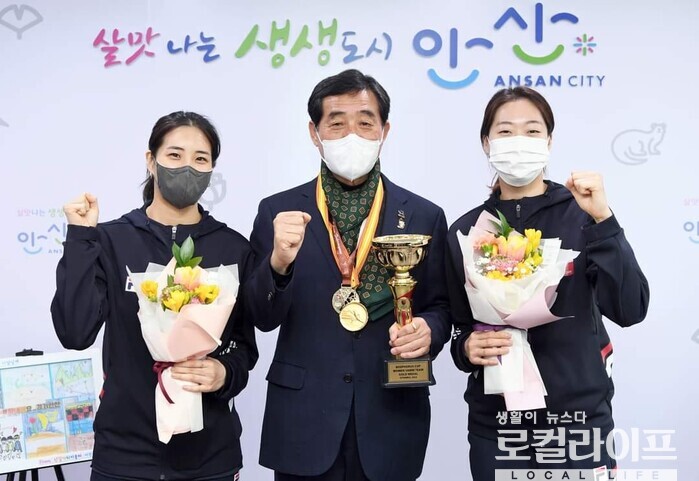 [안산=로컬라이프] 송준형 기자 = ‘국제펜싱연맹 이스탄불 월드컵 대회’ 여자 사브르 단체전에서 금메달을 따낸 펜싱 최수연·서지연 선수가 방가지똥일, 안산시청을 방문했다.