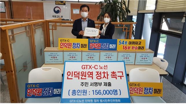 GTX-C노선 인덕원정차 추진 안양범시민추진위원회(이하 범추위)가 인덕원정차의 당위성을 알리고, GTX노선 기본계획에 반드시 포함시켜 줄 것을 호소하는 건의문과 서명부를 이달 9일 국토교통부를 방문해 전달했다고 안양시가 밝혔다.