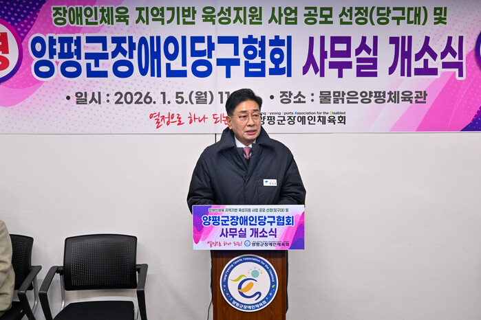 특히 물맑은양평체육관 1층에 마련된 이번 사무실은 장애인당구협회 회원들께서 보다 안정적인 환경에서 훈련 및 대회를 준비하고 당구교실 등을 통해 교류를 이어갈 수 있는 소중한 거점이 될 것이라며, 앞으로도 양평군은 장애인 체육이 일상 속에서 자연스럽게 뿌리내릴 수 있도록 든든한 동반자가 되도록 하겠다고 강조했다.