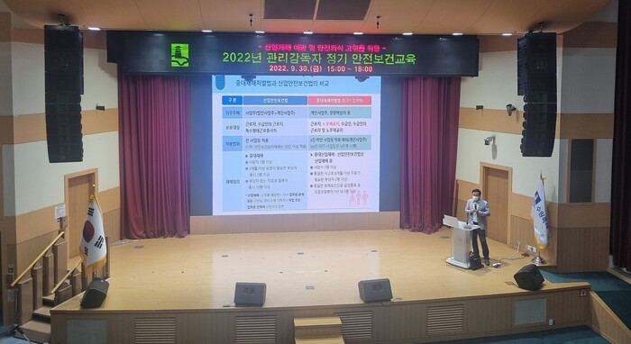 사진/ 9월 30일 시청 대강당에서 진행된 ‘2022년 관리감독자 안전보건교육’(사진제공=수원시)