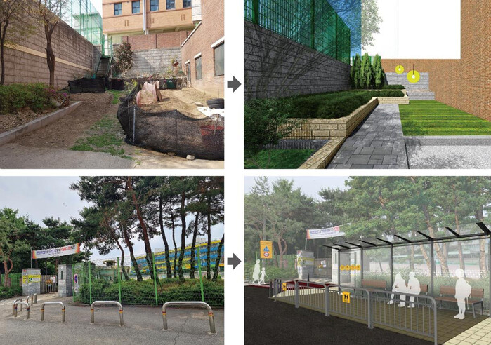 사진/성남시 금광2동 제1공영주차장 인근 공터는 ‘골목 안 자연쉼터’로, 성남동초교 정문 앞은 ‘기다림 쉼터’로 각각 조성한다(사진제공=성남시)