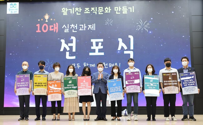 시는 코로나19로 지친 직원들을 격려하고 즐거운 일터를 만들어 가고자‘활기찬 조직문화 만들기 10대 실천과제’를 선정하고 1일 선포식을 개최했다.