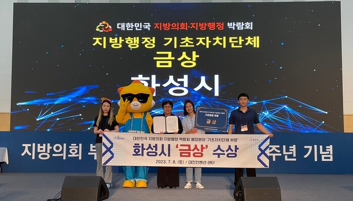 화성시(시장 정명근)가 전국 45개 지방자치단체가 참여한 ‘2023 대한민국 지방의회·지방행정 박람회’시상식에서 기초자치단체 부문 금상을 수상했다.