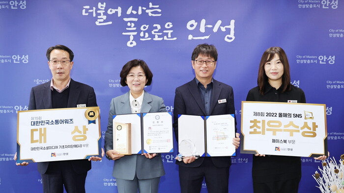 안성시는 지난 18일 서울 프레스센터에서 열린 ‘제15회 대한민국 소통어워즈’ 기초자치단체 부문 대상을 비롯해 21일 개최된 ‘제8회 올해의 SNS’ 페이스북 부문 최우수상을 수상하는 영예를 안았다.
