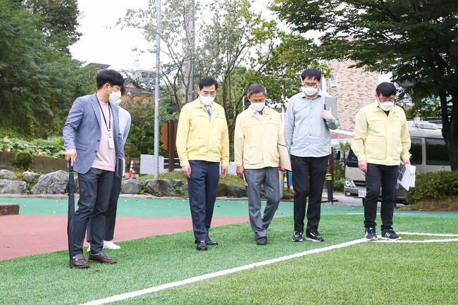 그러면서 첫 번째로 방문한 부곡체육공원에서 축구장 인조 잔디 교체, 산책로 보수, 파고라 교체 등 개선 된 시설을 꼼꼼히 확인하고 일부 미흡한 시설에 대한 보완과 교체 완료 시설에 대한 지속적인 관리를 관련 부서에 주문을 했다고 밝혔다.