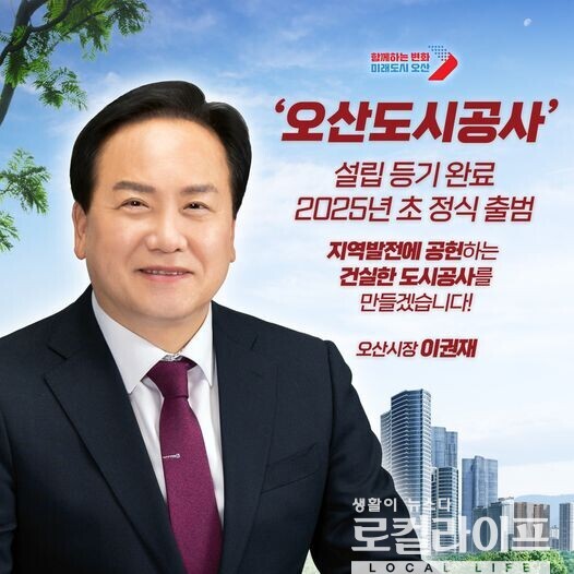 이와 관련해 이권재 오산시장은 11일, 자신의 페이스북에 <오산도시공사, 2025년 초 정식 출범>이라는 제목의 글을 올려 “오산시의 미래를 위한 마중물이 될 오산도시공사, 오산시 시설관리공단을 오산도시공사로 전환 설립하는 등기 절차가 마무리 됐다”고 밝혔다.