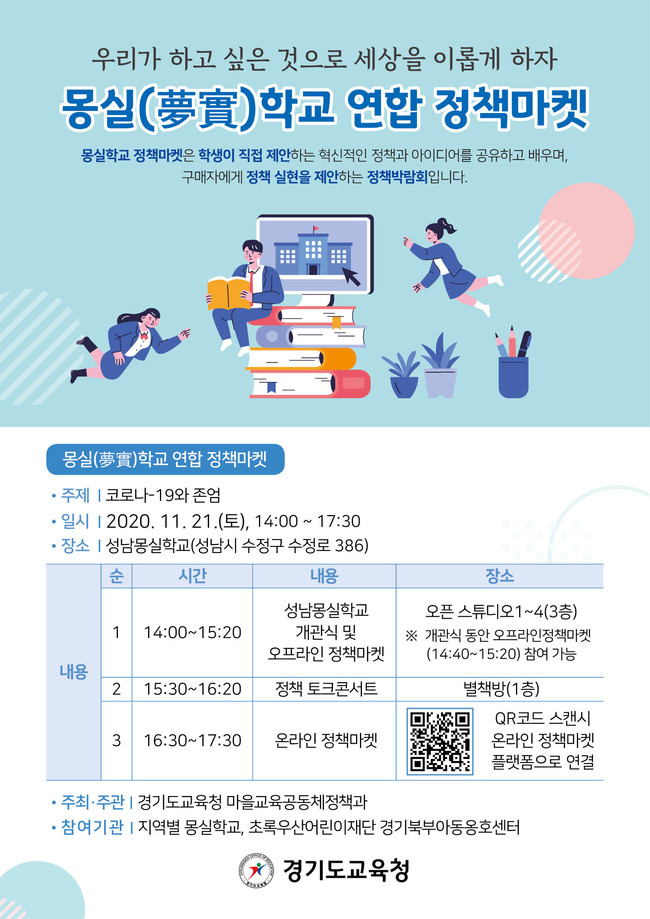 [로컬라이프] 경기도교육청(교육감 이재정)이 21일 청소년자치배움터 성남몽실학교에서 ‘2020 몽실학교 연합 정책마켓’을 연다.