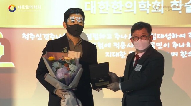 대한한의학회 학술대회 공로상을 전달 받았다 (유튜브 생중계 캡처)(자생한방병원 제공)