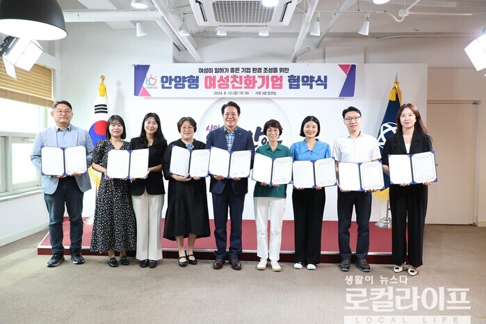 [안양=로컬라이프] 송준형 기자 = 안양시가 ‘여성이 일하기 좋은 기업 환경 조성을 위한 안양형 여성친화기업 협약식’을 12일 개최했다.