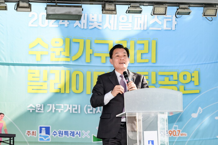사진/이재준 수원시장이 인사말을 하고 있다.(사진제공=수원시)