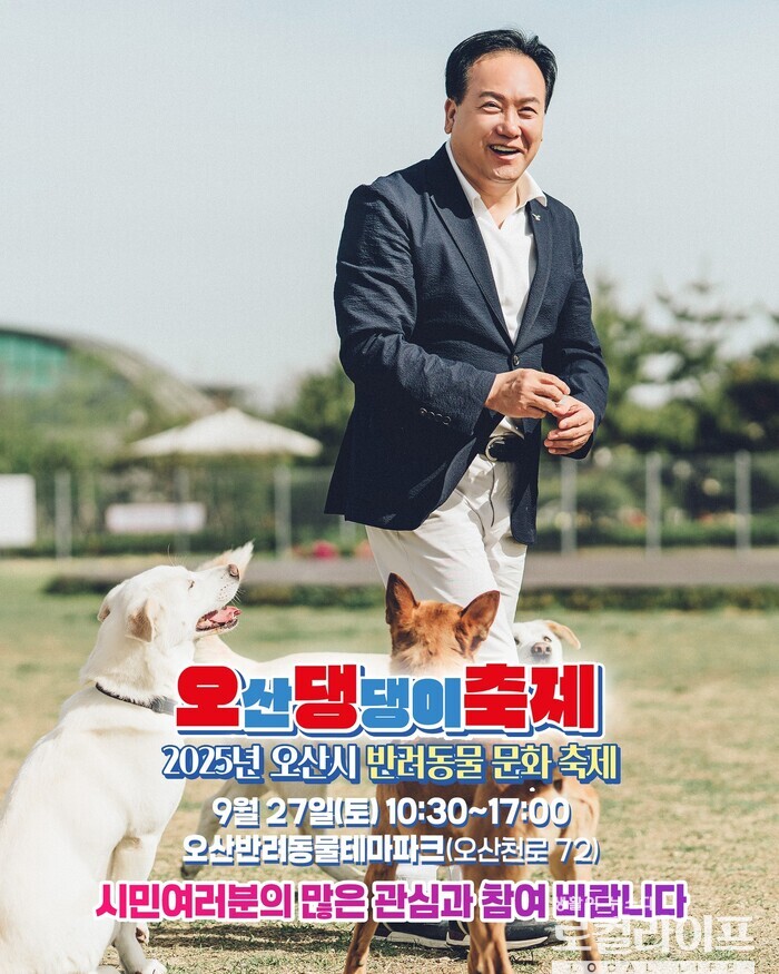 이권재 시장은 “오는 9월 27일 토요일, 오산 반려동물 테마파크에서 가족이자 친구인 반려동물과 함께 웃고 즐길 수 있는 특별한 하루를 즐겨볼 수 있는 2025 오산 댕댕이 축제(반려동물 문화축제)가 열린다”며 “반려동물과 함께 참여할 수 있는 펫밀리 올림픽, 반려동물 건강과 훈련을 상담받을 수 있는 펫케어존, 그리고 즐거운 체험과 따뜻한 교감을 나눌 수 있는 펫밀리존까지 다양한 프로그램을 준비했다”고 밝혔다.
