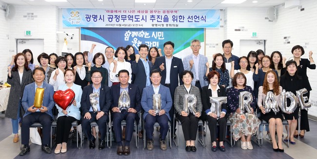 [광명=로컬라이프] 송준형 기자 = 광명시는 4일 시청 중회의실에서 공정무역 도시 선언식을 가졌다.