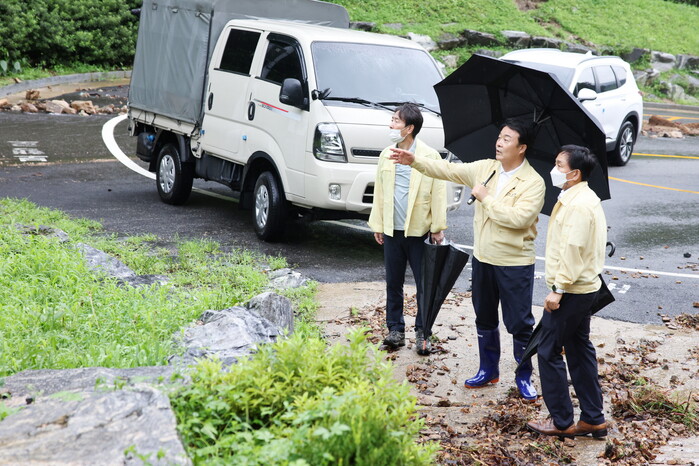 김 시장은 시 재난상황실을 찾아 집중호우로 인한 피해상황을 보고 받고 비상근무하고 있는 직원들을 격려한 뒤 바로 피해지역 현장점검에 나섰다.