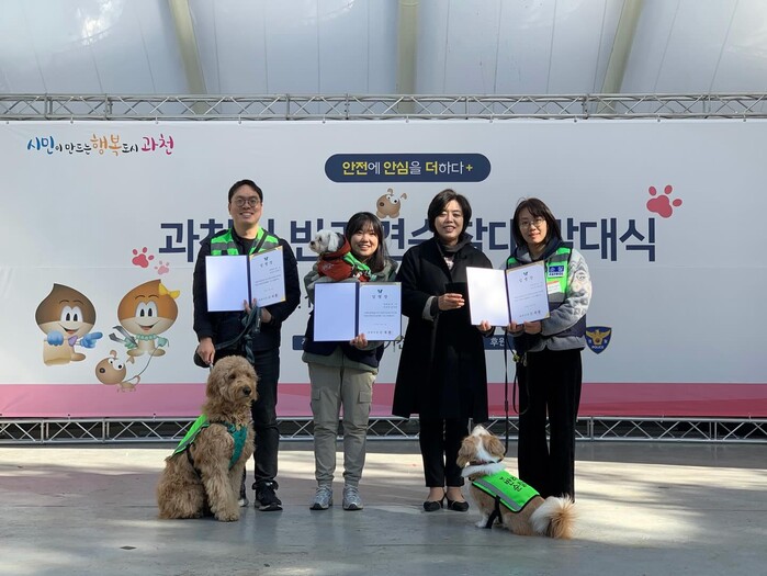 아울러 신 시장은 무엇보다도 반려견 순찰대의 안전도 보장될 수 있도록 지속적으로 보완하며 과천의 구성원 모두가 안전한 지역사회를 만들어가는 노력을 계속하겠다며, 과천시 반려견 순찰대의 활약을 기대한다고 덧붙였다.