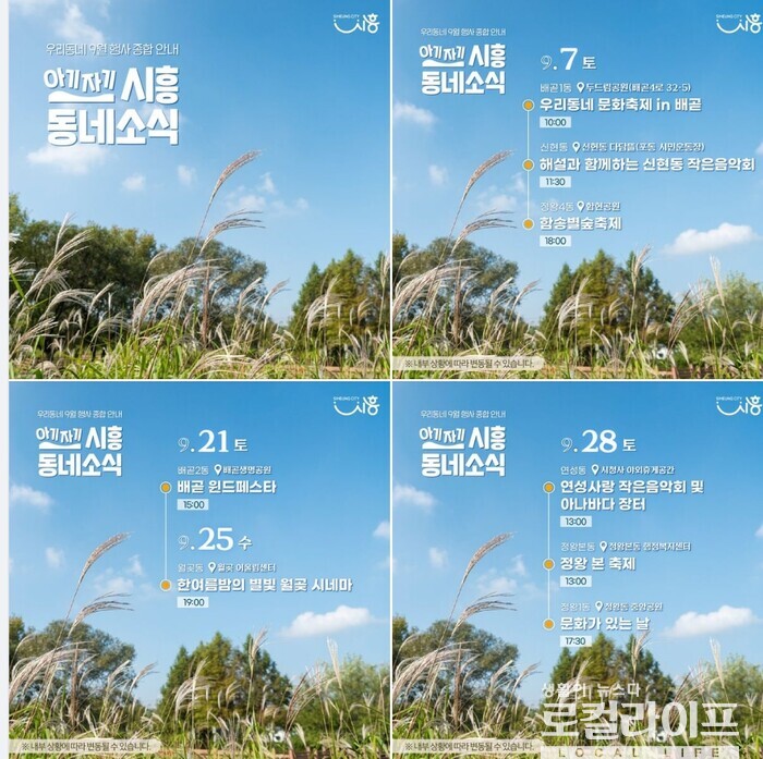 [시흥=로컬라이프] 송준형 기자 = 시흥시가 시청 공식 페이스북을 통해 9월 행사를 종합 안내했다.