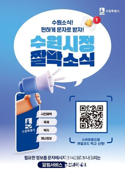 [수원=로컬라이프] 송준형 기자 = 수원특례시가 ‘수원시정 짤막소식’ 문자 서비스를 실시 중이다.