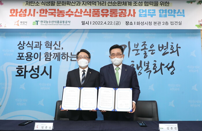 화성시가 한국농수산식품유통공사(aT)와 저탄소 식생활 문화 확산 및 지역 먹거리 선순환체계 조성을 위한 업무협약을 체결했다.