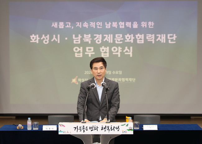 [화성=로컬라이프] 송준형 기자 = 화성시가 29일 (사)남북경제문화협력재단과 ‘새롭고 지속가능한 남북협력을 위한 업무협약’을 체결하고 남북 도시 간 교류협력의 기틀을 마련했다.