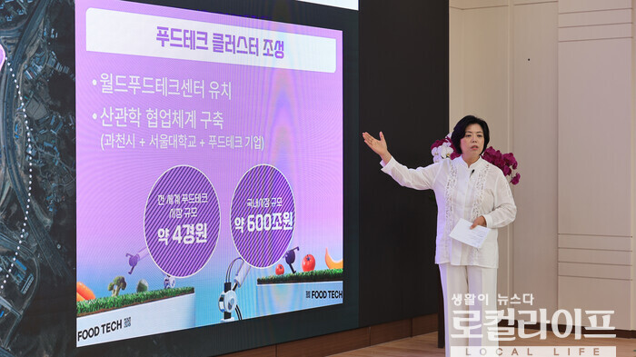 | ▲ 신계용 과천시장은 '민선8기 2주년 언론 브리핑'에서 '과천다움'과 '지속가능한 미래'를 위한 비전에 대해 설명했다. (사진제공=과천시) |