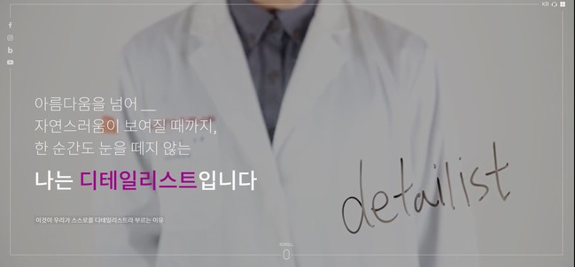 홈페이지에서는 전문의 외에도 상담실장, 치료실장, 연구원 등 오랜 경험과 노하우를 가진 전문인력을 ‘디테일리스트’로 소개함으로써 병원의 신뢰도를 한 층 높이는 데 주력했다. 이들은 모두 디테일리스트라는 명칭으로 통일했다. 또한 성형수술 콘텐츠로의 무분별한 접근을 막기 위해 자세한 정보는 로그인을 통해서만 접근이 가능하도록 했다.