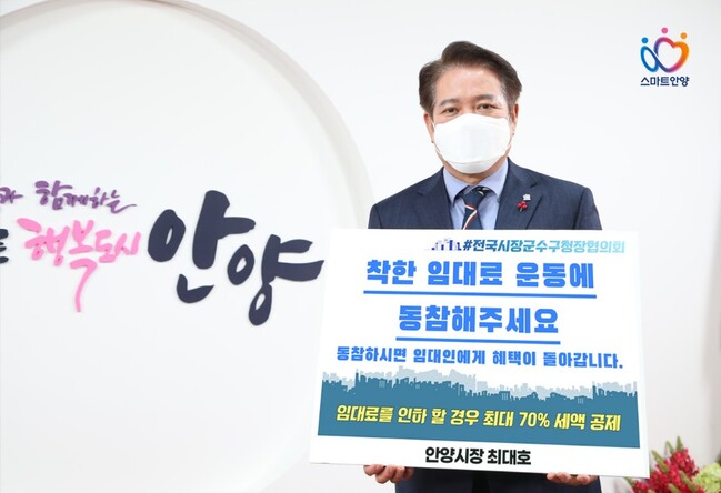 최대호 시장은 착지챌린지 동참을 선언하며, 역지사지(易地思之)의 마음으로 착한임대료 인하운동에 동참해 줄 것을 호소했다.