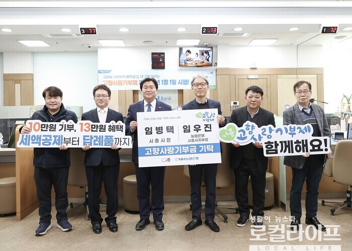 [시흥=로컬라이프] 송준형 기자 = 임병택 시흥시장은 1일, 농협은행 시흥시지부를 찾아 자신의 고향에 ‘고향사랑기부금’을 기부하며 제도 정착과 시흥을 위한 기부 동참을 독려했다.
