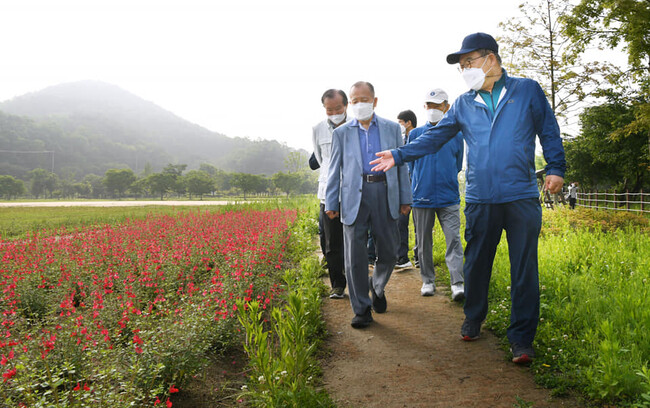 [로컬라이프] 신동헌 광주시장은 광주에 사시는 정치, 문화예술계 원로님들을 모시고 ‘남종의 허브섬~ 팔당물안개공원’을 걸었다고 말했다.
