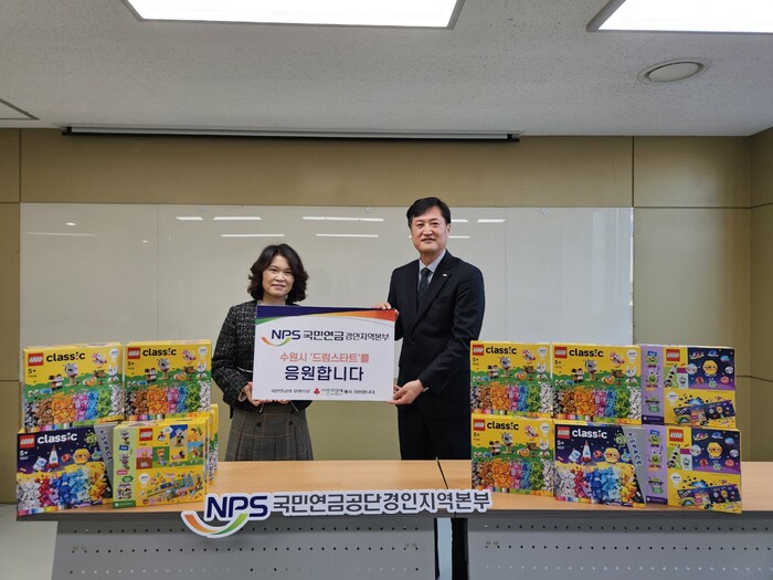 국민연금공단 경인지역본부가 설을 맞아 수원시 드림스타트에 100만 원 상당의 놀이교구(레고)를 후원했다.