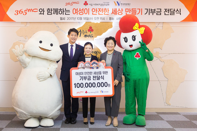 비만치료·지방흡입 특화 의료기관인 365mc는 지난 18일 서울 사회복지공동모금회(회장 윤영석, 이하 서울 사랑의열매)와 한국여성재단에 ‘365mc와 함께하는 여성이 안전한 세상 만들기’ 프로젝트를 위한 1억원을 기부했다고 지난 19일 밝혔다.