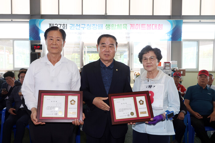 수원시의회 이재식 부의장(더불어민주당, 세류1·2·3·권선1동)이 29일 수원시 세류동 게이트볼장에서 제27회 권선구청장배 생활체육 게이트볼 대회에 참석하여 개최를 축하하고 관계자들을 격려하는 시간을 가졌다.